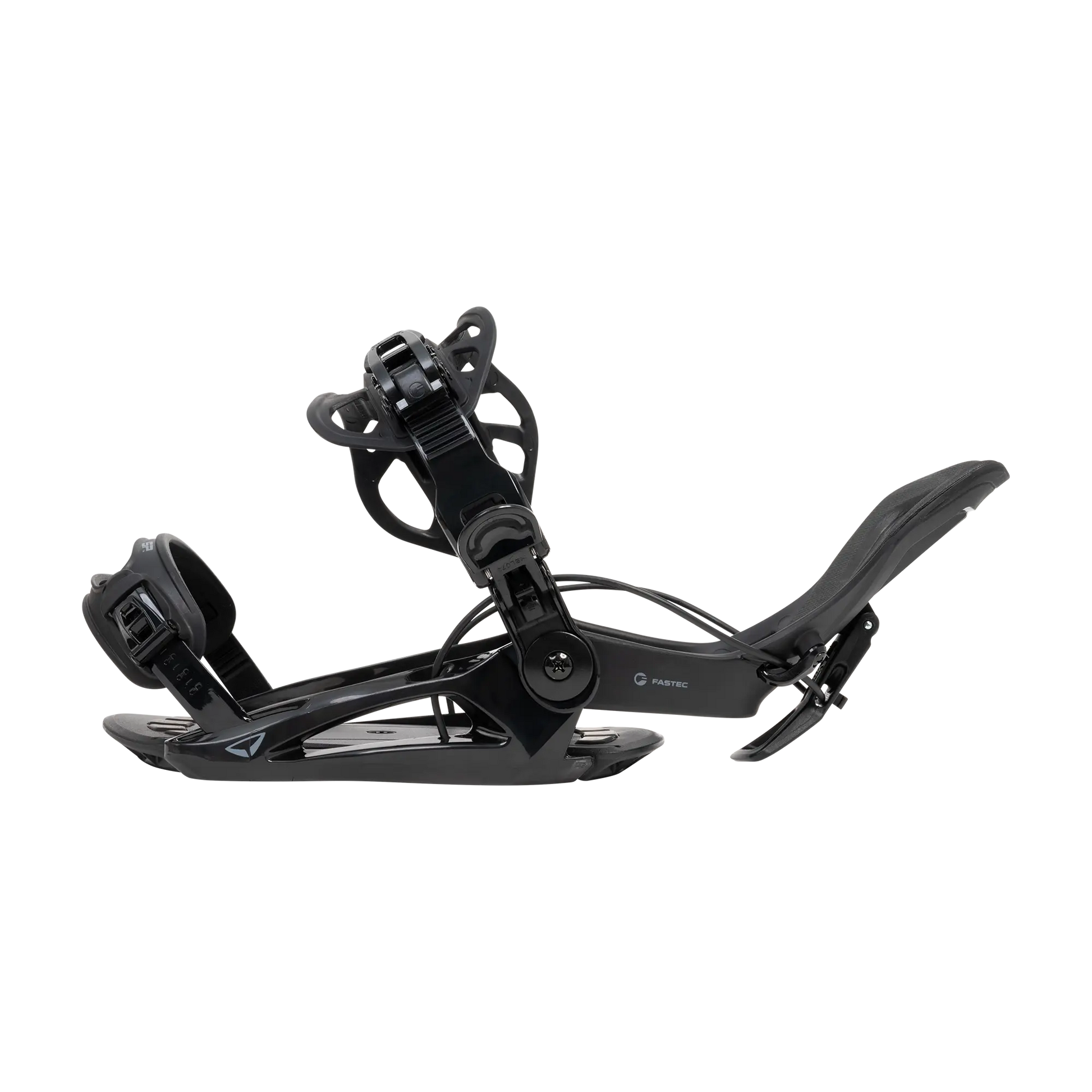 スピードと快適さ、そして扱いやすさにこだわったバインディング。 レバーを下げてハイバックを開き、足を入れたらストラップをロックするだけで準備完了。